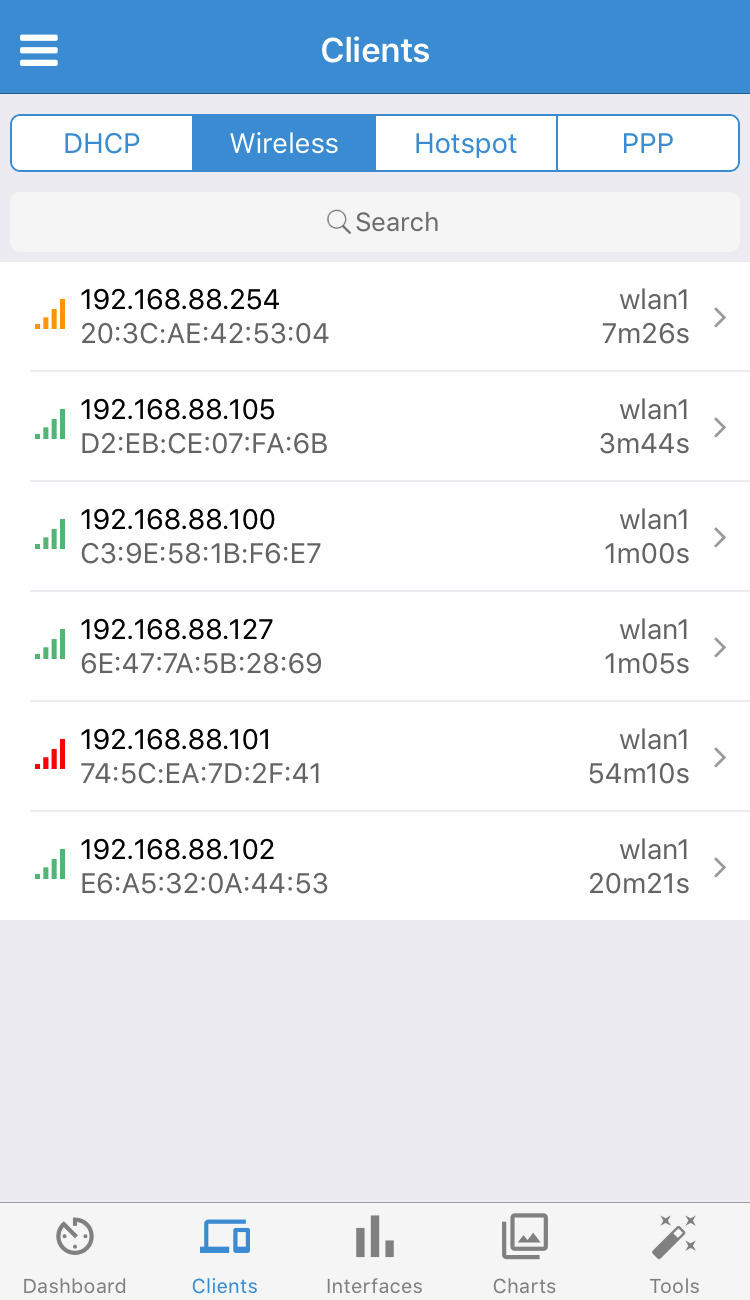 Shows realtime tx/rx rate of interfaces of the router. Group by interface types. Search interfaces by name.