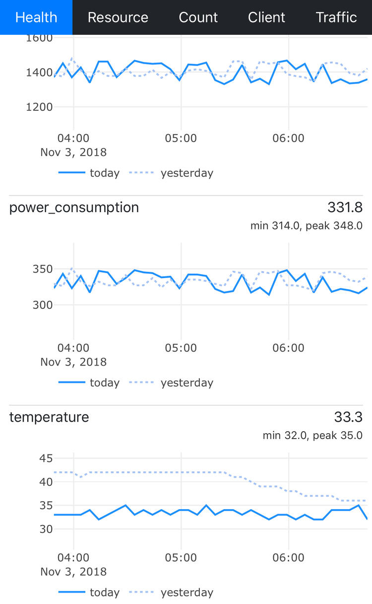 At-a-glance visualization and compare with yesterday. Health, resources, client count and traffic...