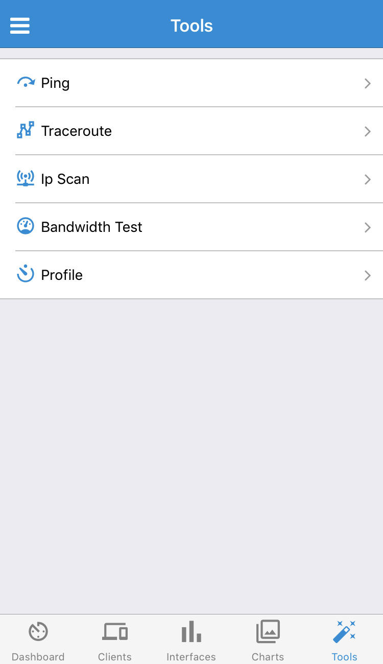 Ping, Traceroute, Ip Scan, Bandwidth Test and Profile.
